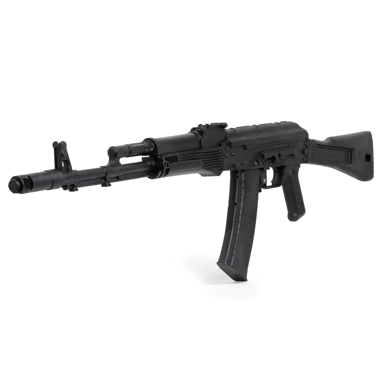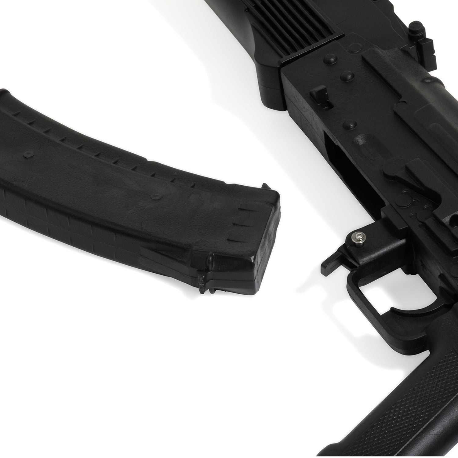 Black rubber TPR AK47 replica with mock trigger & Removable magazine. Realistic design by Playwell for use and training in method of non-deadly force.