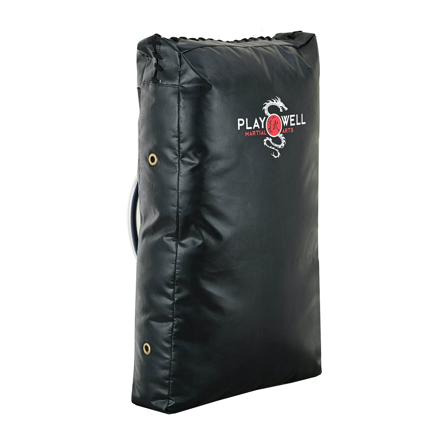 New strike pad brought to the market as per Clubs' requests. Large Size strike pad, with special loose filling of cotton felt, which itself is tough and, when completely filled, will absorb the toughest strike and kick. The top of the bag is secured with a zip, which itself is concealed under PU. At the back, the pad has four handles, covered with Plastic for comfort on the hands (these can easily be cut off if not required). Double stitching on the handles. Also has the added benefit of two top loops for wall hanging. This Playwell pad has everything you need in a striking pad.