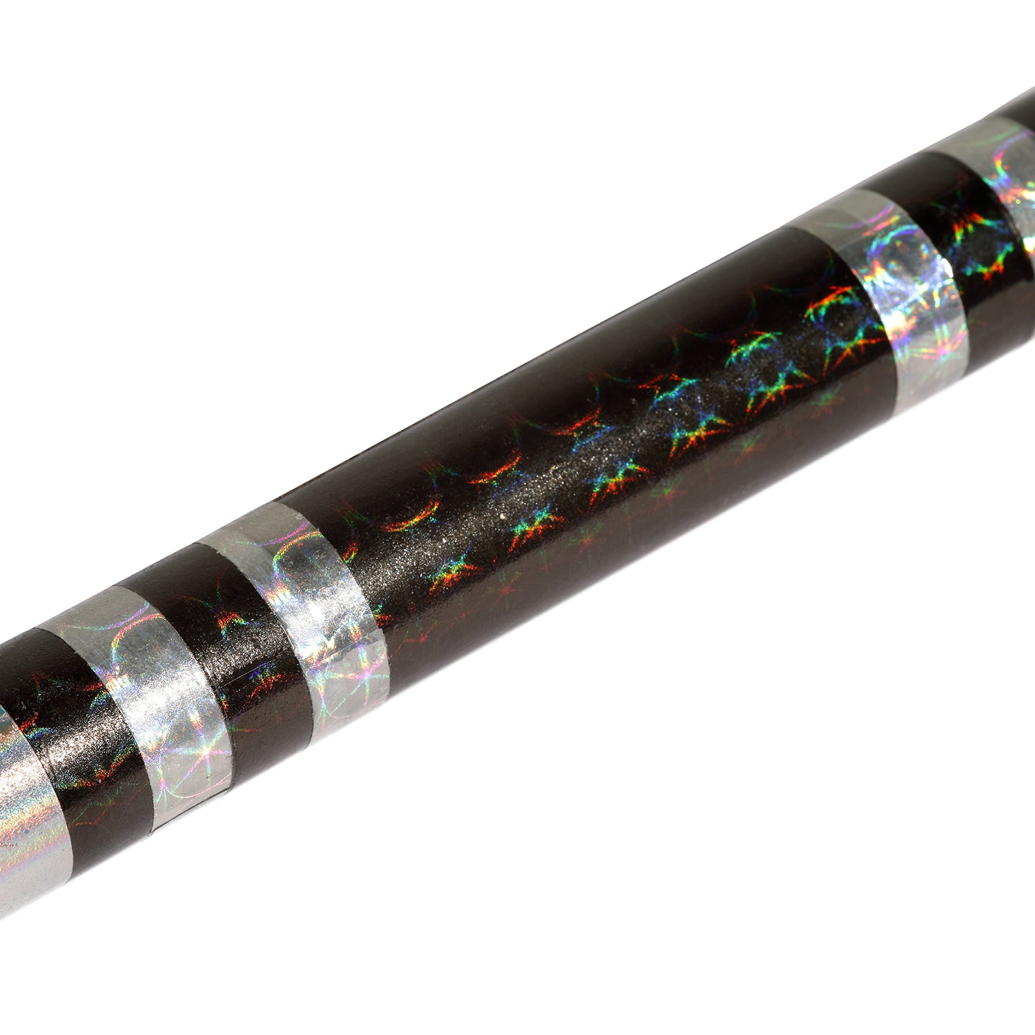 Eye catching large spiral striped tape accents these lightweight nunchaku white wood lotus handles with ball bearing attachment. Three colors to choose from. Details: Length: 12 inches Chain: 4 link chain Diameter: .9 inch