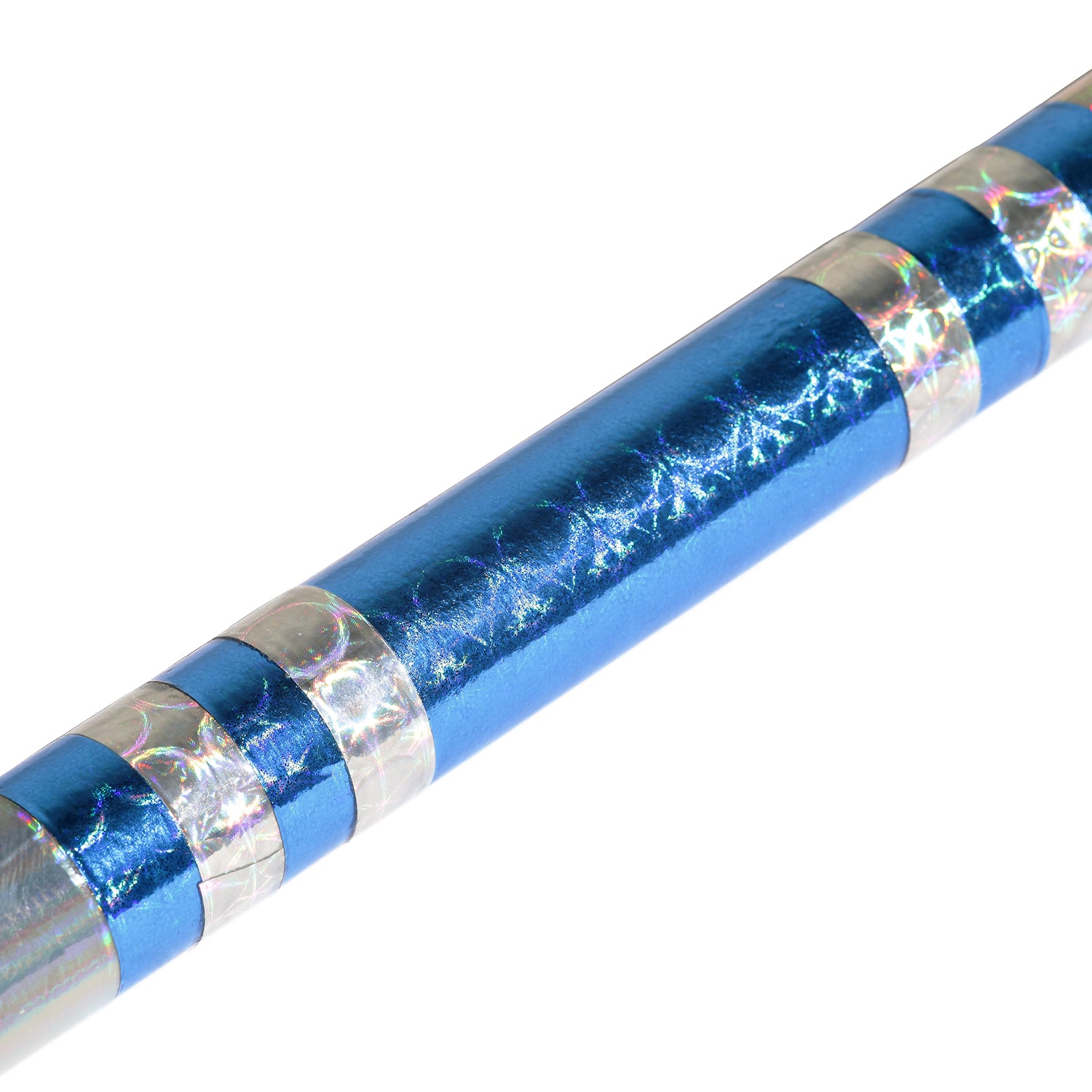Eye catching large spiral striped tape accents these lightweight nunchaku white wood lotus handles with ball bearing attachment. Three colors to choose from. Details: Length: 12 inches Chain: 4 link chain Diameter: .9 inch Colors: Blue with Silver,