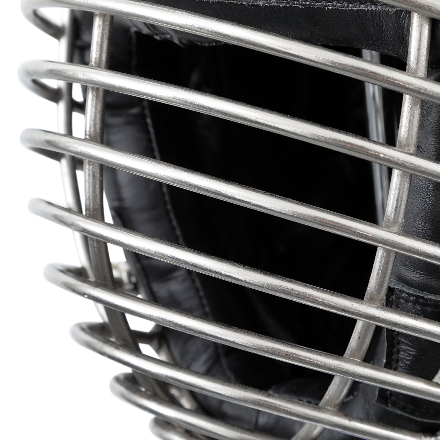 Deluxe Competition Grade Quality HeadGuard for Escrima Made from Cowhide Leather, Full contact protection for escrima training and competition. High quality and heavy duty padded headguard with metal grill. * Genuine leather * Full head and neck protection * Metal face guard * Good visibility