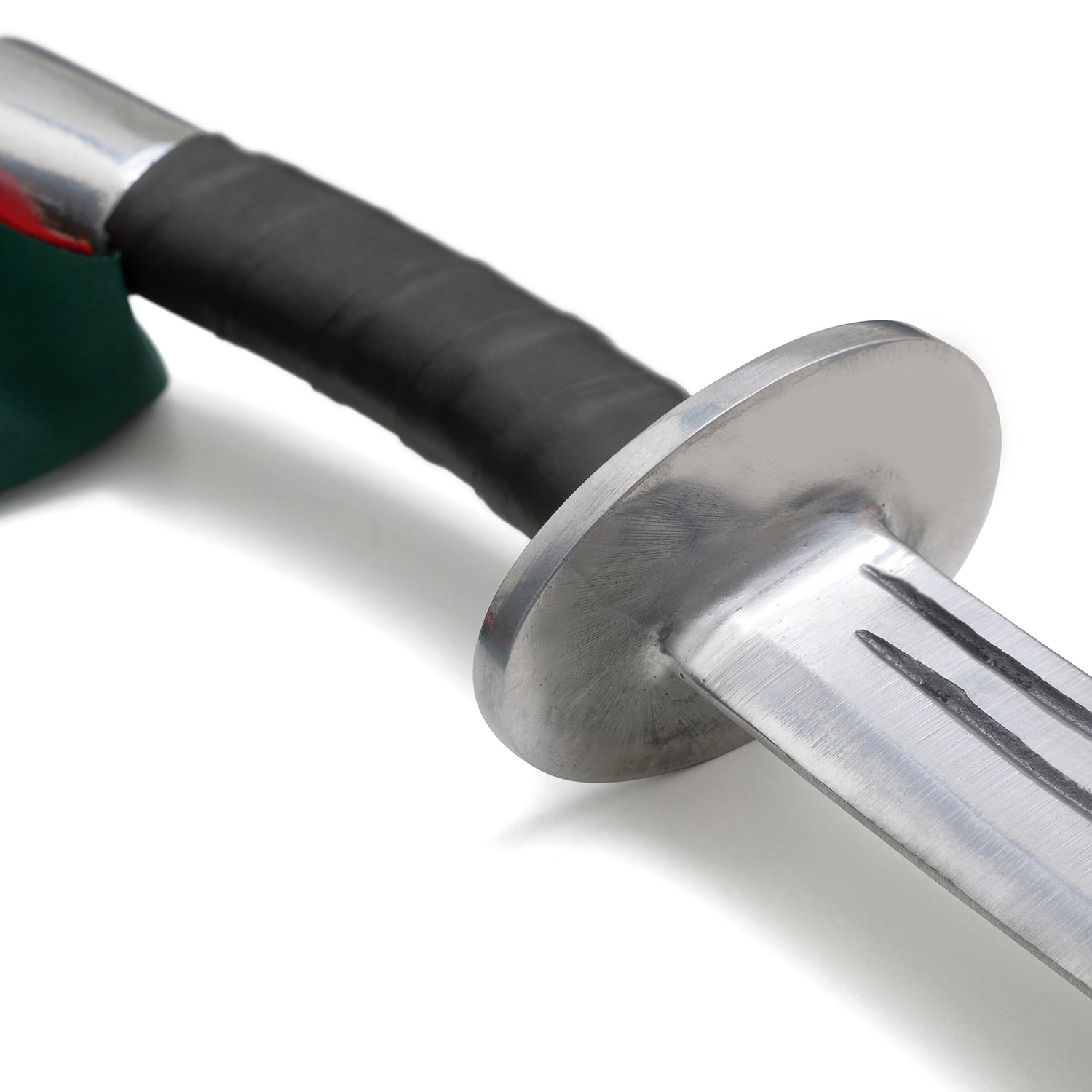Broadsword made of Aluminium. Stylishly crafted of aluminum. Features an etched blood groove in the blade. An excellent training weapon. Wrapped handle. Sashes included, color may vary. Scabbard not included. Total Length approx: 32 inches, Handle Length approx: 5.5 inches