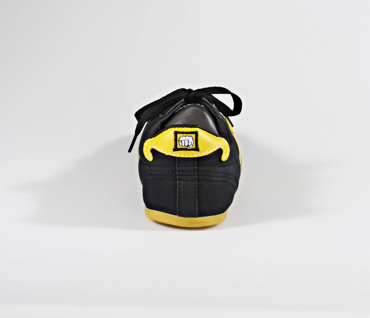 Kung Fu Shoes Beijing An original Chinese Kung Fu shoe from northern China. Made of a very durable, slightly luminous nylon material featuring the distinctive yellow Kung Fu sole as well as the typical Chinese yellow design appliqués along the sides and at the heel. Solid quality at a better price. Sizes Listed As EU Sizes Colour: Black Sizes: 36 -47