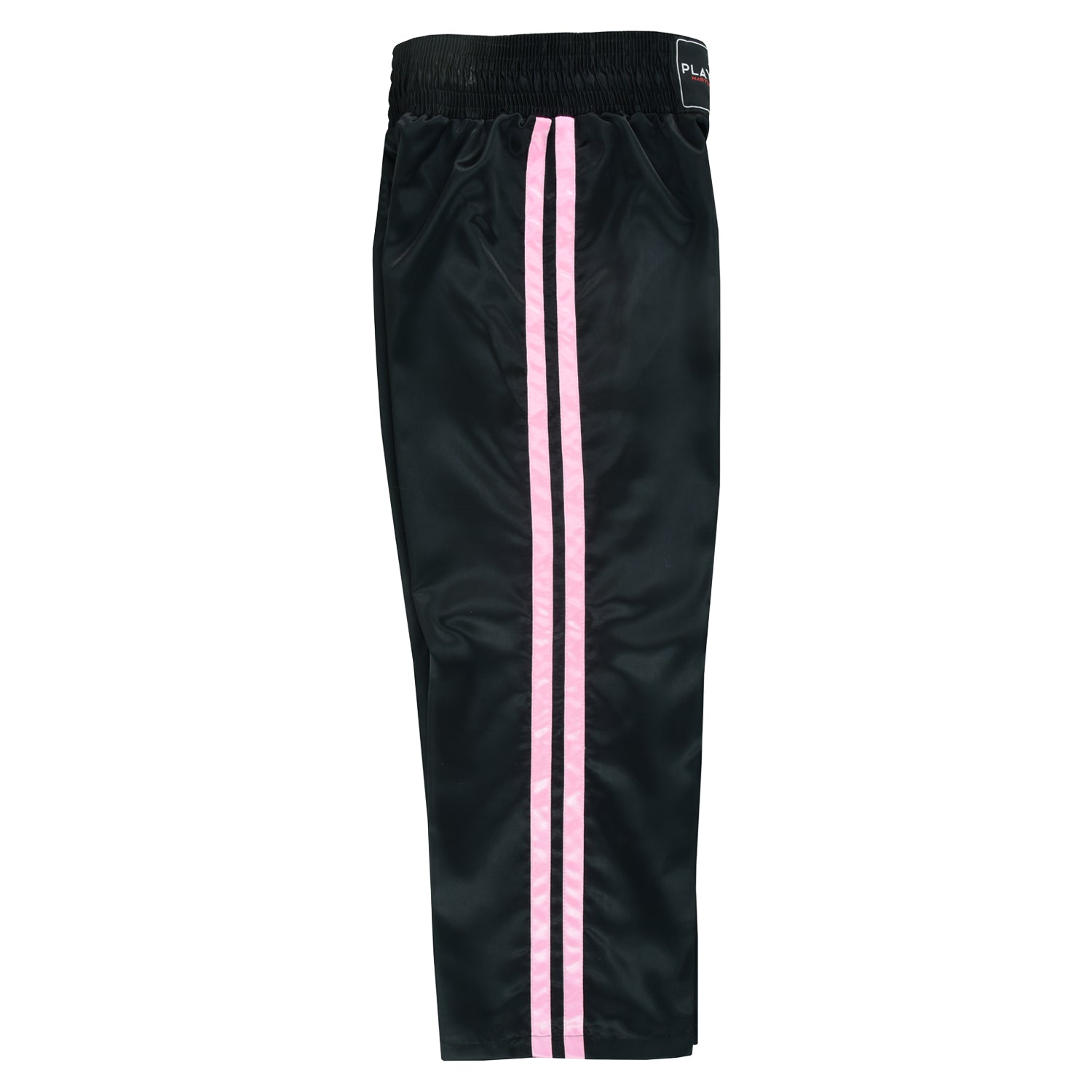 Adults Full Contact Black Satin Kickboxing Pants With Stripes